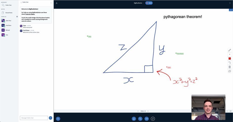 BigBlueButton, kurumsal dünyadan daha çok çevrimiçi öğrenme ve eğitim topluluğu için tasarlanmış; ses, video, slaytlar, sohbet ve eğitmen/sunum yapan kişinin ekranının gerçek zamanlı paylaşımını sağlayan profesyonel bir video konferans aracıdır. Öğrenciler/katılımcılar, emoji simgeleri, anketler ve daha bir çok şeyin paylaşılması yoluyla başkalarıyla da iletişim kurabilir.