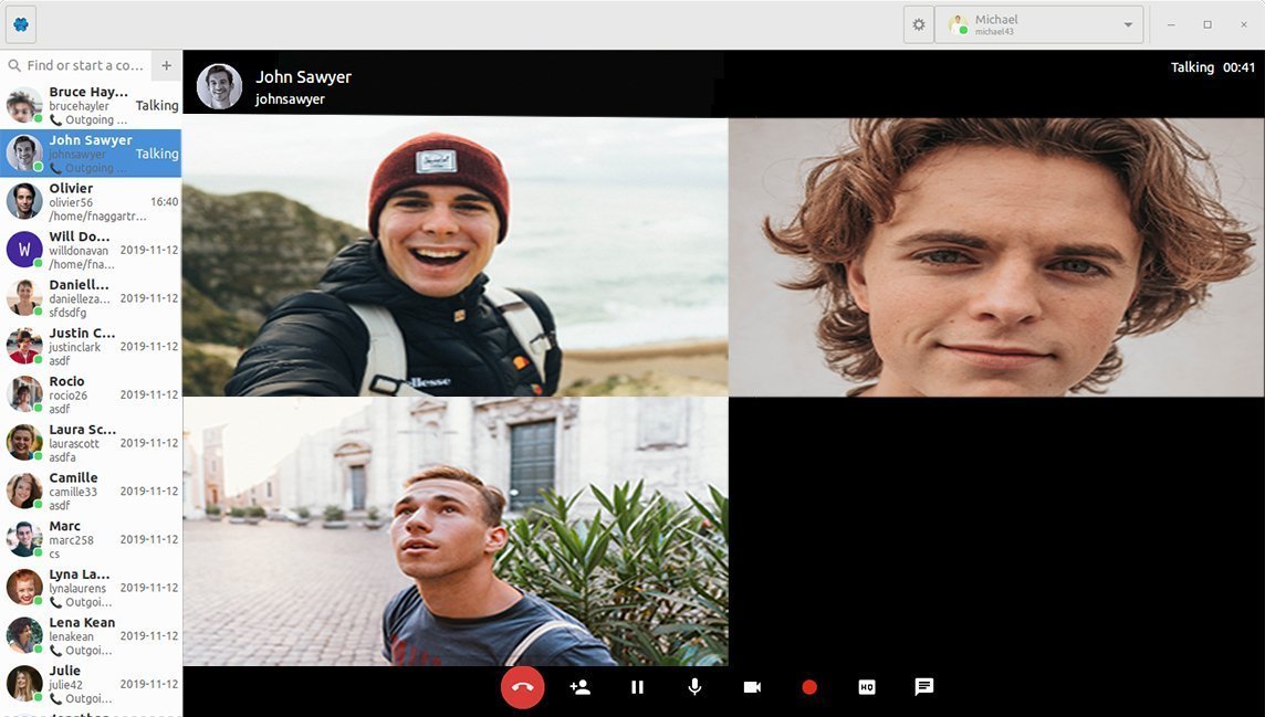 Bir video konferansta, kullanıcılar konferans düzenini dinamik olarak değiştirebilir, vurgulamak için katılımcıları seçebilir, sunumları paylaşabilir veya medyayı tam ekranda yayınlayabilir. Uygulama, tek bir tıklama ile kalıcı veya geçici bir oda oluşturma özelliği ile bir konferans sunucusuna dönüşebilir. Bunlardan biri oluşturulduktan sonra, davet edilen kullanıcılar toplantı sahibi olmasa veya başka bir görüşmede olsa bile istedikleri zaman buluşabilir, görüşebilir ve birbirleriyle konuşabilir. Kod ve ek ayrıntılar Jami’nin sitesinde mevcuttur .